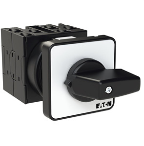 Umschalter, Sortiment: Steuerschalter, Typkenner: T0, mit schwarzem Knebel und Frontschild, Kontakte: 6, Schutzart: Front IP65, Bauform: Einbau, Schaltwinkel: 60 °, Schaltverhalten: rastend, mit 0-Stellung, Frontschild: 0-1-2, Bemessungsbetriebsleistung AC-23A, 50 - 60 Hz 400 V: P = 5,5 kW, Bemessungsdauerstrom: Iu = 20 A, 3 Baueinheit(en), Normen und Bestimmungen: IEC/EN 60947, VDE 0660, IEC/EN 60204, CSA, UL, Lasttrennschalter nach IEC/EN 60947-3