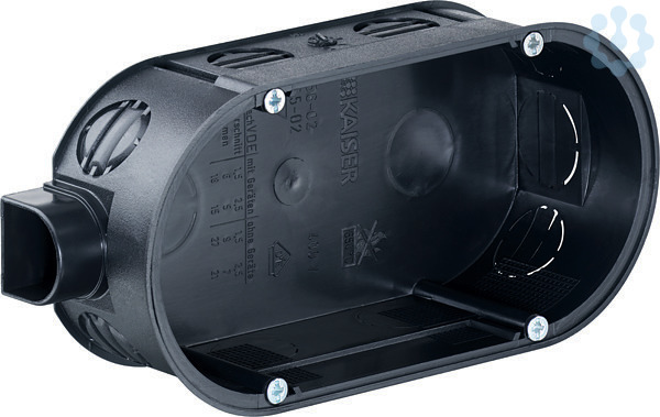 Doppel-Geräte-Verbindungsdose mit Geräteschrauben (1656-02). Installationsart: Basis-Installation | Anwendungsgebiet: Für Einbaugeräte | Geräteschrauben: 4 | Länge: 140 mm | Breite: 60 mm | Tiefe: 42 mm