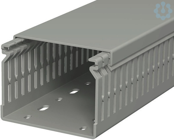 Verdrahtungskanal inkl. Oberteil und Bodenlochung zur waagerechten und senkrechten Verlegung elektrischer Kabel und Leitungen im Schaltschrank. Ausführung als metrischer Kanal. Das Nennmaß der Systemgröße entspricht dem Innenmaß der Kanäle. Das Ausbrechen der Stege erfolgt werkzeuglos. Bodenbündiges Ausführen ist durch Sollbruchstellen möglich. Verjüngungen in den Seitenschlitzen verhindern das Herausfallen der Leitungen. Geprüft nach DIN EN 50085-2-3. Sonderlängen auf Anfrage.