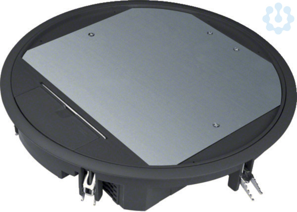 Die Versorgungseinheit R12, rund, 306mm, ist für 5mm Bodenbelag geeignet und besteht aus tiefschwarzem Polyamid. Sie entspricht den Normen DIN EN 50085-1 und DIN EN 50085-2-2. Das Produkt verfügt über einen Belagschutzrahmen und einen Gerätebecher, der bis 18 mm stufenweise absenkbar ist. Es bietet eine Anschlussmöglichkeit für Flachketten und ist ideal für Unterflurmontagen in Bodeninstallationssystemen. Inklusive Universal-Befestigungsset.