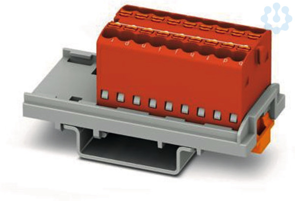 Verteilerblock, intern gebrückt, Nennspannung: 500 V, Nennstrom: 17,5 A, Anzahl der Anschlüsse: 18, Anschlussart: Push-in-Anschluss, Querschnitt: 0,14 mm² - 2,5 mm², Montageart: NS 35/15, NS 35/7,5, Farbe: rot