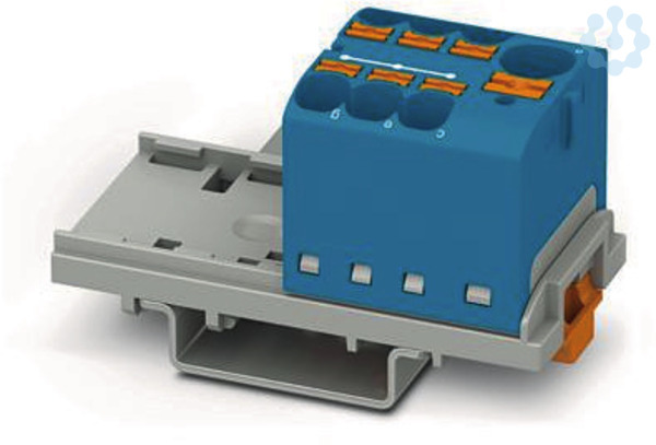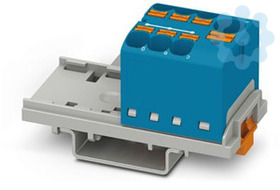 Verteilerblock, Nennspannung: 800 V, Nennstrom: 32 A, Anzahl der Anschlüsse: 7, Anschlussart: Push-in-Anschluss, Bemessungsquerschnitt: 4 mm², Abgriff, Querschnitt: 0,2 mm² - 6 mm², Push-in-Anschluss, Sammelanschluss, Bemessungsquerschnitt: 10 mm², Querschnitt: 0,5 mm² - 10 mm², Montageart: NS 35/7,5, NS 35/15, Farbe: blau