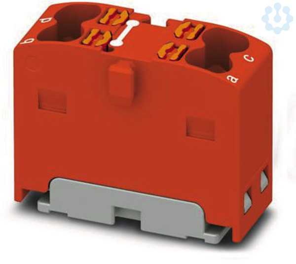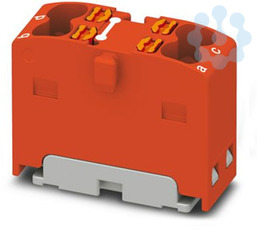 Verteilerblock, intern gebrückt, Nennspannung: 450 V, Nennstrom: 17,5 A, Anzahl der Anschlüsse: 4, Anschlussart: Push-in-Anschluss, Querschnitt: 0,14 mm² - 2,5 mm², Montageart: aufrasten auf Tragschienenadapter, Direktmontage mit Flansch, Fliegend, Farbe: rot