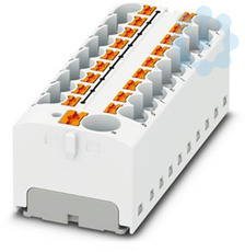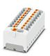 Verteilerblock, Nennspannung: 450 V, Nennstrom: 32 A, Anzahl der Anschlüsse: 19, Anschlussart: Push-in-Anschluss, Bemessungsquerschnitt: 4 mm², Abgriff, Querschnitt: 0,2 mm² - 6 mm², Push-in-Anschluss, Sammelanschluss, Bemessungsquerschnitt: 10 mm², Querschnitt: 0,5 mm² - 10 mm², Montageart: aufrasten auf Tragschienenadapter, Direktmontage mit Flansch, Fliegend, Farbe: weiß