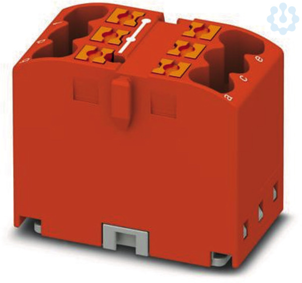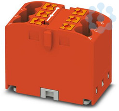 Verteilerblock, Grundklemme, Nennspannung: 450 V, Nennstrom: 24 A, Anzahl der Anschlüsse: 6, Anschlussart: Push-in-Anschluss, Querschnitt: 0,14 mm² - 4 mm², Montageart: aufrasten auf Tragschienenadapter, Direktmontage mit Flansch, Fliegend, Farbe: rot
