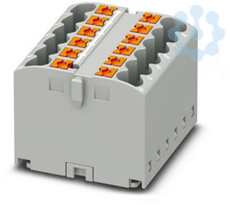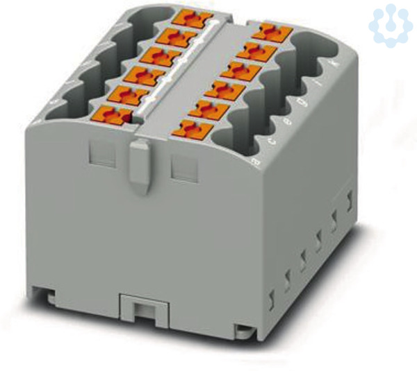 Verteilerblock, Grundklemme, Nennspannung: 450 V, Nennstrom: 24 A, Anzahl der Anschlüsse: 12, Anschlussart: Push-in-Anschluss, Querschnitt: 0,14 mm² - 4 mm², Montageart: aufrasten auf Tragschienenadapter, Direktmontage mit Flansch, Fliegend, Farbe: grau