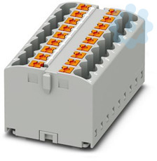 Verteilerblock, Grundklemme, Nennspannung: 450 V, Nennstrom: 24 A, Anzahl der Anschlüsse: 18, Anschlussart: Push-in-Anschluss, Querschnitt: 0,14 mm² - 4 mm², Montageart: aufrasten auf Tragschienenadapter, Direktmontage mit Flansch, Fliegend, Farbe: grau
