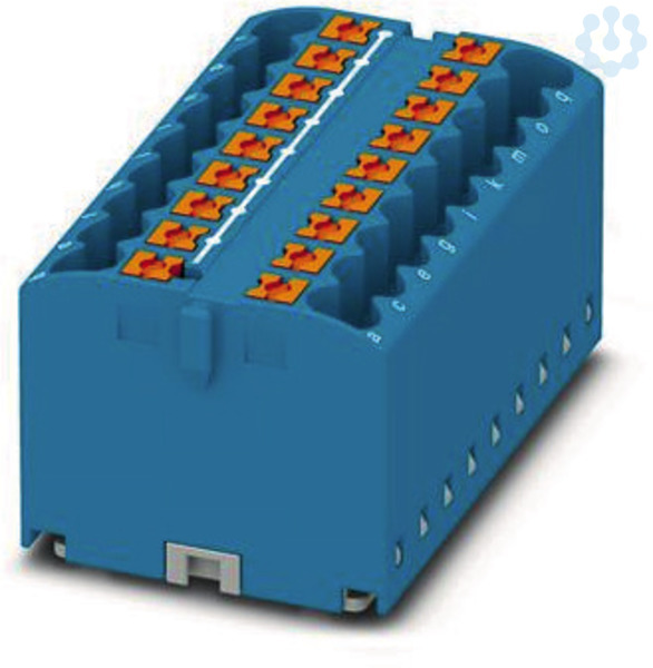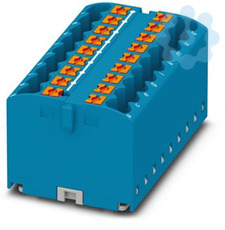Verteilerblock, Grundklemme, Nennspannung: 450 V, Nennstrom: 24 A, Anzahl der Anschlüsse: 18, Anschlussart: Push-in-Anschluss, Querschnitt: 0,14 mm² - 4 mm², Montageart: aufrasten auf Tragschienenadapter, Direktmontage mit Flansch, Fliegend, Farbe: blau