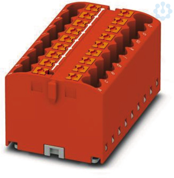 Verteilerblock, Grundklemme, Nennspannung: 450 V, Nennstrom: 24 A, Anzahl der Anschlüsse: 18, Anschlussart: Push-in-Anschluss, Querschnitt: 0,14 mm² - 4 mm², Montageart: aufrasten auf Tragschienenadapter, Direktmontage mit Flansch, Fliegend, Farbe: rot