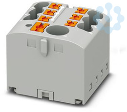Verteilerblock, Grundklemme mit Einspeisung, Nennspannung: 450 V, Nennstrom: 24 A, Anzahl der Anschlüsse: 7, Anschlussart: Push-in-Anschluss, Bemessungsquerschnitt: 2,5 mm², Abgriff, Querschnitt: 0,14 mm² - 4 mm², Push-in-Anschluss, Sammelanschluss, Bemessungsquerschnitt: 6 mm², Querschnitt: 0,5 mm² - 10 mm², Montageart: aufrasten auf Tragschienenadapter, Direktmontage mit Flansch, Fliegend, Farbe: grau