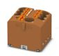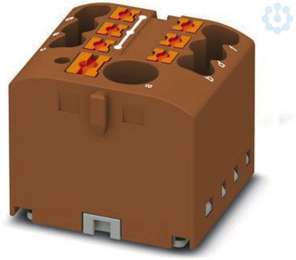 Verteilerblock, Grundklemme mit Einspeisung, Nennspannung: 450 V, Nennstrom: 24 A, Anzahl der Anschlüsse: 7, Anschlussart: Push-in-Anschluss, Bemessungsquerschnitt: 2,5 mm², Abgriff, Querschnitt: 0,14 mm² - 4 mm², Push-in-Anschluss, Sammelanschluss, Bemessungsquerschnitt: 6 mm², Querschnitt: 0,5 mm² - 10 mm², Montageart: aufrasten auf Tragschienenadapter, Direktmontage mit Flansch, Fliegend, Farbe: braun