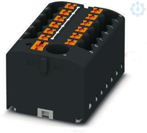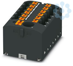Verteilerblock, Grundklemme mit Einspeisung, Nennspannung: 450 V, Nennstrom: 24 A, Anzahl der Anschlüsse: 13, Anschlussart: Push-in-Anschluss, Bemessungsquerschnitt: 2,5 mm², Abgriff, Querschnitt: 0,14 mm² - 4 mm², Push-in-Anschluss, Sammelanschluss, Bemessungsquerschnitt: 6 mm², Querschnitt: 0,5 mm² - 10 mm², Montageart: aufrasten auf Tragschienenadapter, Direktmontage mit Flansch, Fliegend, Farbe: schwarz