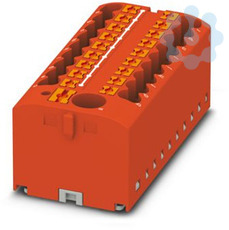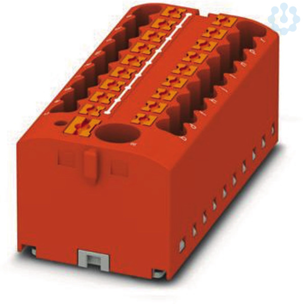 Verteilerblock, Grundklemme mit Einspeisung, Nennspannung: 450 V, Nennstrom: 24 A, Anzahl der Anschlüsse: 19, Anschlussart: Push-in-Anschluss, Bemessungsquerschnitt: 2,5 mm², Abgriff, Querschnitt: 0,14 mm² - 4 mm², Push-in-Anschluss, Sammelanschluss, Bemessungsquerschnitt: 6 mm², Querschnitt: 0,5 mm² - 10 mm², Montageart: aufrasten auf Tragschienenadapter, Direktmontage mit Flansch, Fliegend, Farbe: rot