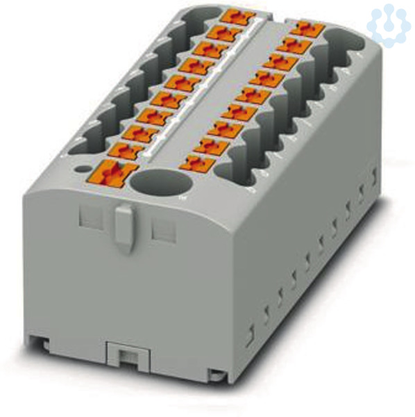 Verteilerblock, Grundklemme mit Einspeisung, Nennspannung: 450 V, Nennstrom: 24 A, Anzahl der Anschlüsse: 19, Anschlussart: Push-in-Anschluss, Bemessungsquerschnitt: 2,5 mm², Abgriff, Querschnitt: 0,14 mm² - 4 mm², Push-in-Anschluss, Sammelanschluss, Bemessungsquerschnitt: 6 mm², Querschnitt: 0,5 mm² - 10 mm², Montageart: kleben, Farbe: grau