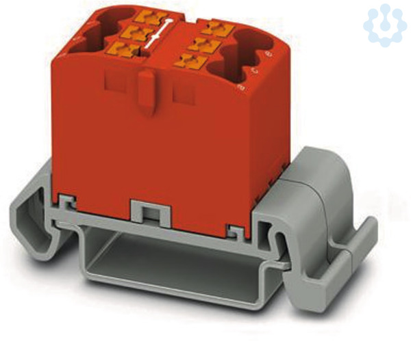 Verteilerblock, Block mit waagerechter Ausrichtung, Nennspannung: 690 V, Nennstrom: 24 A, Anzahl der Anschlüsse: 6, Anschlussart: Push-in-Anschluss, Querschnitt: 0,14 mm² - 4 mm², Montageart: NS 35/7,5, NS 35/15, Farbe: rot