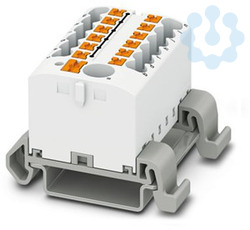 Verteilerblock, Block mit waagerechter Ausrichtung und integrierter Einspeisung, Nennspannung: 690 V, Nennstrom: 24 A, Anzahl der Anschlüsse: 13, Anschlussart: Push-in-Anschluss, Bemessungsquerschnitt: 2,5 mm², Abgriff, Querschnitt: 0,14 mm² - 4 mm², Push-in-Anschluss, Sammelanschluss, Bemessungsquerschnitt: 6 mm², Querschnitt: 0,5 mm² - 10 mm², Montageart: NS 35/7,5, NS 35/15, Farbe: weiß