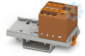 Verteilerblock, Block mit senkrechter Ausrichtung und integrierter Einspeisung, Nennspannung: 690 V, Nennstrom: 24 A, Anzahl der Anschlüsse: 7, Anschlussart: Push-in-Anschluss, Bemessungsquerschnitt: 2,5 mm², Abgriff, Querschnitt: 0,14 mm² - 4 mm², Push-in-Anschluss, Sammelanschluss, Bemessungsquerschnitt: 6 mm², Querschnitt: 0,5 mm² - 10 mm², Montageart: NS 35/7,5, NS 35/15, Farbe: braun