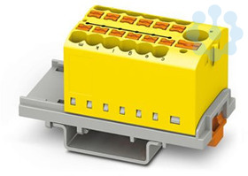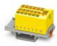 Verteilerblock, Block mit senkrechter Ausrichtung und integrierter Einspeisung, Nennspannung: 690 V, Nennstrom: 24 A, Anzahl der Anschlüsse: 13, Anschlussart: Push-in-Anschluss, Bemessungsquerschnitt: 2,5 mm², Abgriff, Querschnitt: 0,14 mm² - 4 mm², Push-in-Anschluss, Sammelanschluss, Bemessungsquerschnitt: 6 mm², Querschnitt: 0,5 mm² - 10 mm², Montageart: NS 35/7,5, NS 35/15, Farbe: gelb