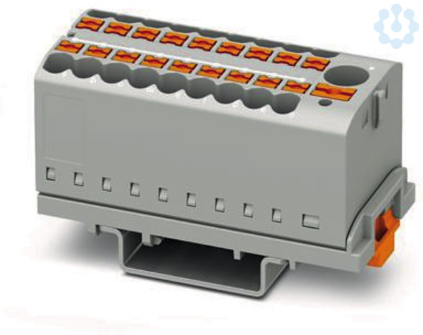 Verteilerblock, Block mit senkrechter Ausrichtung und integrierter Einspeisung, Nennspannung: 690 V, Nennstrom: 24 A, Anzahl der Anschlüsse: 19, Anschlussart: Push-in-Anschluss, Bemessungsquerschnitt: 2,5 mm², Abgriff, Querschnitt: 0,14 mm² - 4 mm², Push-in-Anschluss, Sammelanschluss, Bemessungsquerschnitt: 6 mm², Querschnitt: 0,5 mm² - 10 mm², Montageart: NS 35/7,5, NS 35/15, Farbe: grau