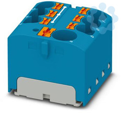 Verteilerblock, Nennspannung: 450 V, Nennstrom: 32 A, Anzahl der Anschlüsse: 7, Anschlussart: Push-in-Anschluss, Bemessungsquerschnitt: 4 mm², Abgriff, Querschnitt: 0,2 mm² - 6 mm², Push-in-Anschluss, Sammelanschluss, Bemessungsquerschnitt: 10 mm², Querschnitt: 0,5 mm² - 10 mm², Montageart: aufrasten auf Tragschienenadapter, Direktmontage mit Flansch, Fliegend, Farbe: blau