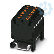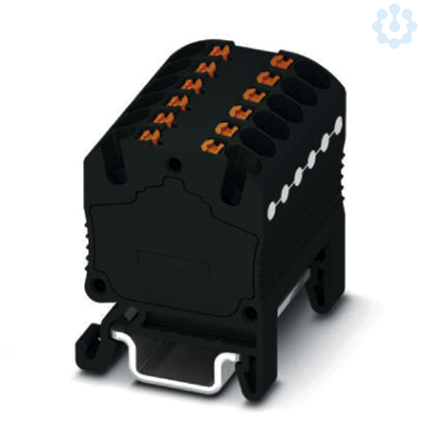 Verteilerblock, die Blöcke sind untereinander über den Leiterschacht brückbar, passende Steckbrücken siehe Zubehör, intern gebrückt, Nennspannung: 500 V, Nennstrom: 17,5 A, Anschlussart: Push-in-Anschluss, Querschnitt: 0,14 mm² - 2,5 mm², Montageart: NS 15, Farbe: schwarz