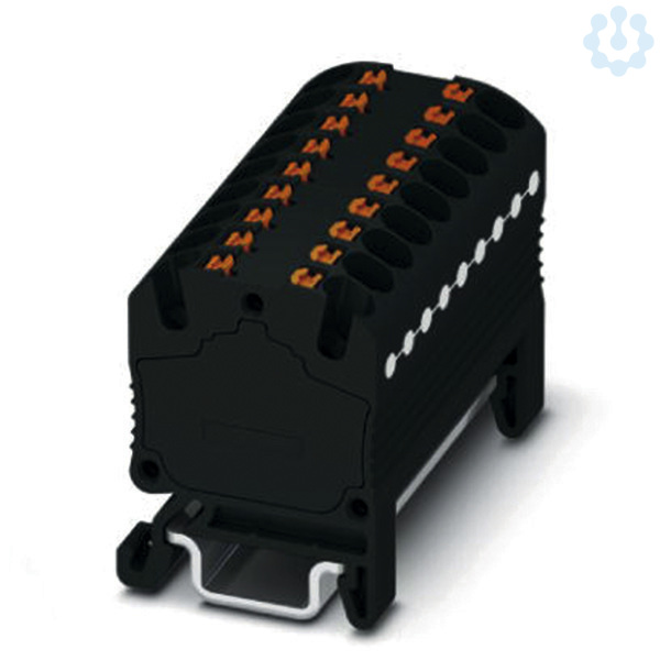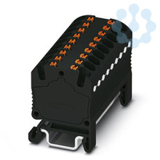 Verteilerblock, die Blöcke sind untereinander über den Leiterschacht brückbar, passende Steckbrücken siehe Zubehör, intern gebrückt, Nennspannung: 500 V, Nennstrom: 17,5 A, Anschlussart: Push-in-Anschluss, Querschnitt: 0,14 mm² - 2,5 mm², Montageart: NS 15, Farbe: schwarz