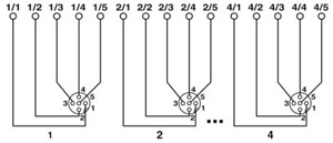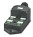 Verteilerbox, Anschlussart: M12-Buchse Metall, Anzahl der Steckplätze: 4, Polzahl: 5, Kodierung: A, Steckplatzbelegung: parallel, Statusanzeige: nein, Universal; Stammleitungsanschluss: Steckbarer Schraubanschluss 180°, Schirmung: nein