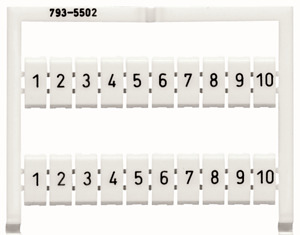 WMB-Beschriftungskarte; als Karte; bedruckt; 1 ... 10 (10x); dehnbar 5 - 5,2 mm; Aufdruck waagerecht; aufrastbar; weiß