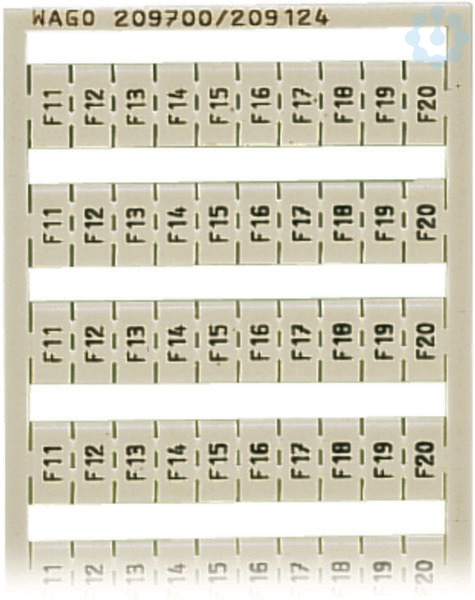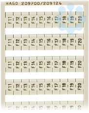 WSB-Beschriftungskarte; als Karte; bedruckt; F1, ..., F10 (10x); nicht dehnbar; Aufdruck senkrecht; aufrastbar; weiß