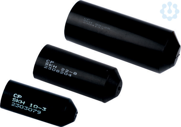 Warmschrumpf-Endkappen SKH mit Kleber, als Druck- und Feuchtigkeitsschutz für Kabel, Leitungen und Rohre von 5 - 105 mm Durchmesser.