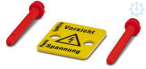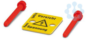 Warnschild, Platte, gelb/schwarz, beschriftet: Blitzpfeil und Warnhinweis in Englisch, Montageart: stecken, für Klemmenbreite: 6 mm, Anzahl der Einzelschilder: 1