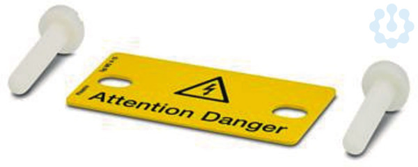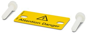Warnschild, Platte, orange, beschriftet: Blitzpfeil und Warnhinweis in Englisch, Montageart: stecken, für Klemmenbreite: 15 mm, Anzahl der Einzelschilder: 1