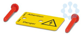 Warnschild, Platte, gelb/schwarz, beschriftet: Blitzpfeil und Warnhinweis in Englisch, Montageart: stecken, für Klemmenbreite: 8 mm, Anzahl der Einzelschilder: 1