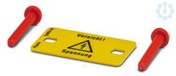Warnschild, Platte, gelb/schwarz, beschriftet: Blitzpfeil und Warnhinweis in Englisch, Montageart: stecken, für Klemmenbreite: 10 mm, Anzahl der Einzelschilder: 1