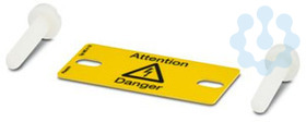 Warnschild, Platte, orange, beschriftet: Blitzpfeil und Warnhinweis in Englisch, Montageart: stecken, für Klemmenbreite: 14 mm, Anzahl der Einzelschilder: 1