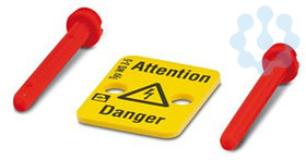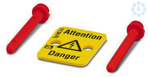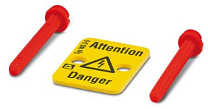 Warnschild, Platte, gelb/schwarz, beschriftet: Blitzpfeil und Warnhinweis in Englisch, Montageart: stecken, für Klemmenbreite: 5 mm, Anzahl der Einzelschilder: 1