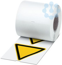 Warnschild, Rolle, gelb/schwarz, unbeschriftet, beschriftbar mit: THERMOMARK E.300 (D)/600 (D), THERMOMARK ROLL 2.0, THERMOMARK ROLL, THERMOMARK ROLL X1, THERMOMARK ROLLMASTER 300/600, THERMOMARK X1.2, Montageart: kleben, Anzahl der Einzelschilder: 250, Textfeldhöhe: 100 mm, Textfeldbreite: 100 mm
