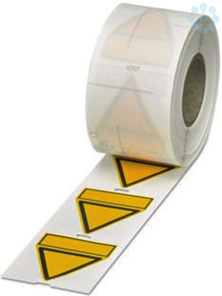 Warnschild, Rolle, gelb/schwarz, unbeschriftet, beschriftbar mit: THERMOMARK E.300 (D)/600 (D), THERMOMARK ROLL 2.0, THERMOMARK ROLL, THERMOMARK ROLL X1, THERMOMARK ROLLMASTER 300/600, THERMOMARK X1.2, Montageart: kleben, Anzahl der Einzelschilder: 500, Textfeldhöhe: 50 mm, Textfeldbreite: 50 mm
