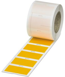 Warnschild, Rolle, gelb, unbeschriftet, beschriftbar mit: THERMOMARK E.300 (D)/600 (D), THERMOMARK ROLL 2.0, THERMOMARK ROLL, THERMOMARK ROLL X1, THERMOMARK ROLLMASTER 300/600, Montageart: kleben, Anzahl der Einzelschilder: 500, Textfeldhöhe: 26 mm, Textfeldbreite: 52 mm