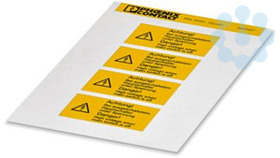 Warnschild, Bogen, gelb/schwarz, beschriftet: Blitzpfeil und Warnhinweis in Deutsch, Englisch, Montageart: kleben, Anzahl der Einzelschilder: 4, Textfeldhöhe: 26 mm, Textfeldbreite: 52 mm