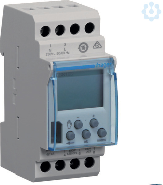 Digitale Wochenschaltuhr, 1-Kanal mit Wechselkontakt, ermöglicht zeitabhängige Steuerung über Display oder App. Integrierte Funktionen umfassen automatische Sommer-/Winterzeitumstellung, temporäre/permanente Steueroptionen und sperrbare Tastatur. Gangreserve ohne Netzspannung hält ca. 5 Jahre. Geeignet für Reiheneinbau auf Hutschiene. Unterstützt Bluetooth 4.2 für App-Steuerung. Ideal für präzise Zeitsteuerung in Verteilersystemen.