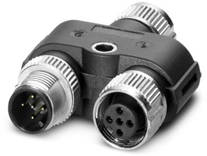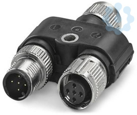 Y-Verteiler, 5-polig, geschirmt, Buchse gerade M12 SPEEDCON, Kodierung: A, auf Buchse gerade M12 SPEEDCON, Kodierung: A und Stecker gerade M12 SPEEDCON, Kodierung: A, parallel Verteiler