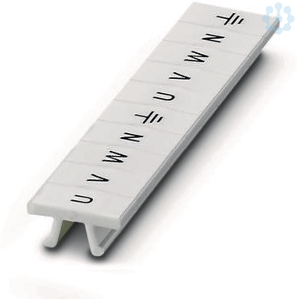 Zackband, Streifen, weiß, beschriftet, längs bedruckt: U, V, W, N, GND, U, V, W, N, GND, Montageart: verrasten, für Klemmenbreite: 5,08 mm, Anzahl der Einzelschilder: 10, Textfeldhöhe: 10,5 mm, Textfeldbreite: 4,98 mm