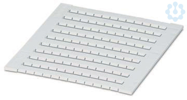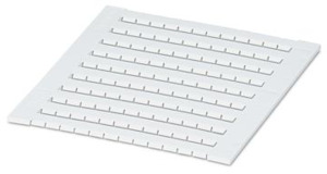 Zackbandmatte flach, bestellbar: mattenweise, weiß, beschriftet nach Kundenangaben, Montageart: verrasten in flacher Schildchennut, für Klemmenbreite: 5,2 mm, Anzahl der Einzelschilder: 120, Textfeldhöhe: 4,5 mm, Textfeldbreite: 5 mm