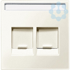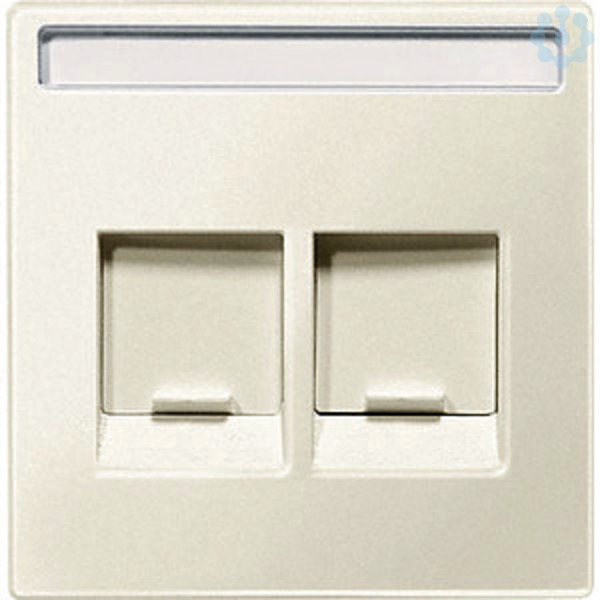 Zentralplatte f.Modular Jack 2-fach Schriftf. u. Staubschutzsch., weiss