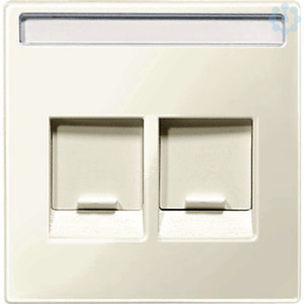 Zentralplatte für Modular Jack 2fach mit Schriftfeld und Staubschutzschieber, weiß glänzend, System M