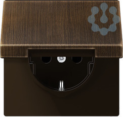 Zentralplatte für SCHUKO®-Steckdoseneinsätze, Klappdeckel, Messing, Serie LS, Messing antik