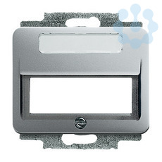 Zentralscheibe, titan, alpha, Abdeckungen für Datenkommunikation, Zentralscheibe mit Beschriftungsfeld Mit Schrägauslass. Zur Abdeckung von IBM ACS-/Reichle & De-Massari-Doppel-Anschlussmodulen in Verbindung mit den Modulträgern 1801 EB-10 oder 1801 EB-16. Größe des Beschriftungsfeldes: 41,5 x 10 mm. Ohne Spreize.