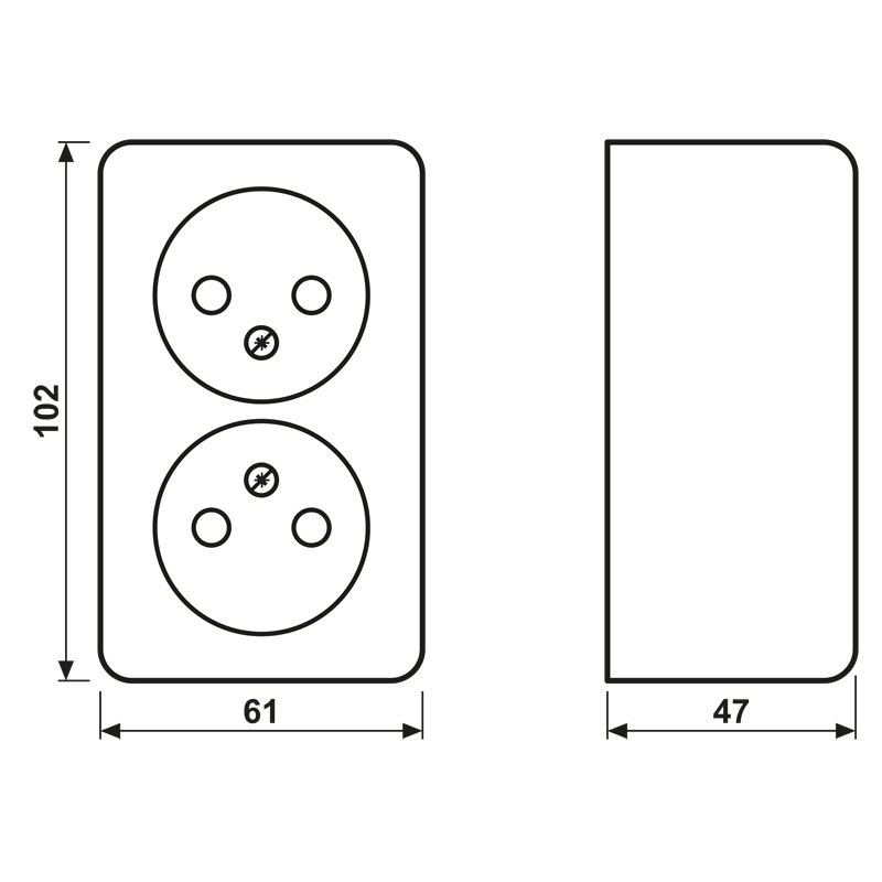 Zweifach-Steckdose ohne Schutzkontakt, 16 A 250 V ~, 47 mm, mit Berührungsschutz, AP 600, weiß